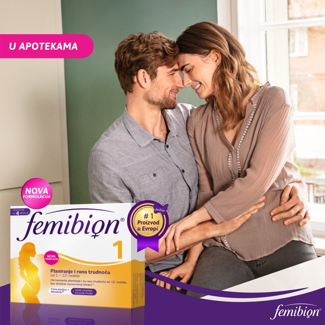 Dodaci ishrani koji se preporučuju trudnicama obuhvataju one vitamine i minerale koji su najvažniji za period trudnoće u kom se nalazi. Femibion 1 sadrži kombinaciju pravilno odabranih hranljivih materija, uključujući najvažnije mešavinu folata* (folna kiselina i folat Metafolin®) i holina, kao i kompleks B vitamina, vitamine C, D i E, selen, jod i gvožđe. Osmišljen je posebno za fazu planiranja trudnoće i za prvo tromesečje, kada je imunitet trudnice najslabiji.