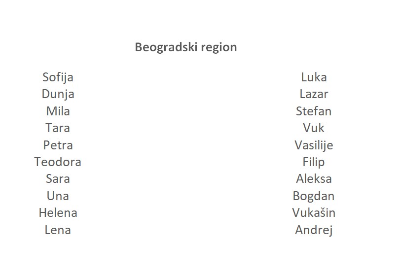 Ovo su najpopularnija imena prema regionima