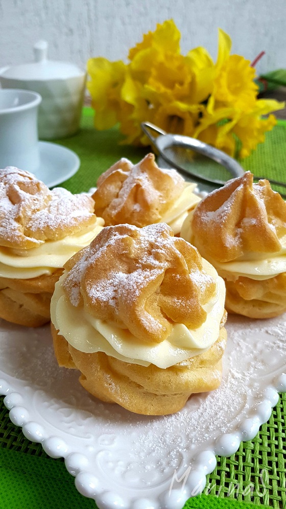 1. Presecite svaku krofnicu na pola, pa napunite donji deo filom (možete opet koristiti dresir džak i zvezdasti nastavak) i na kraju poklopite gornjim delom pečenog testa. Ne štedite jer fila ima sasvim dovoljno.