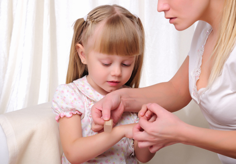 Povređeno mesto nije preporučljivo zavijati gazom niti na njega stavljati flastere jer se tako sprečava zarastanje rana. Na ranu sme da se stavi samo „stanicid” gaza. Ako je povreda manja, to mogu da urade i sami roditelji, ali u slučajevima malo ozbiljnijih povreda dete je najsigurnije odvesti kod lekara.