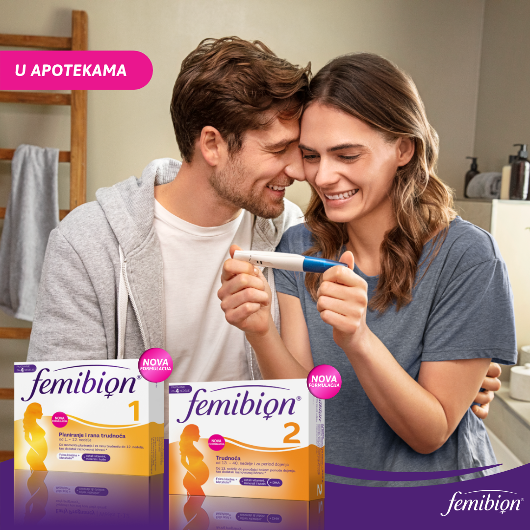 Trudnicama se preporučuje raznovrsna, zdrava ishrana, bogata voćem i povrćem i ostalim namirnicama koje sadrže potrebne vitamine i minerale, kao i upotreba adekvatnih suplemenata. FEMIBION 1 – za period planiranja trudnoće i ranu trudnoću do 12. nedelje sadrži sve što je potrebno – kako mami, tako i bebi.